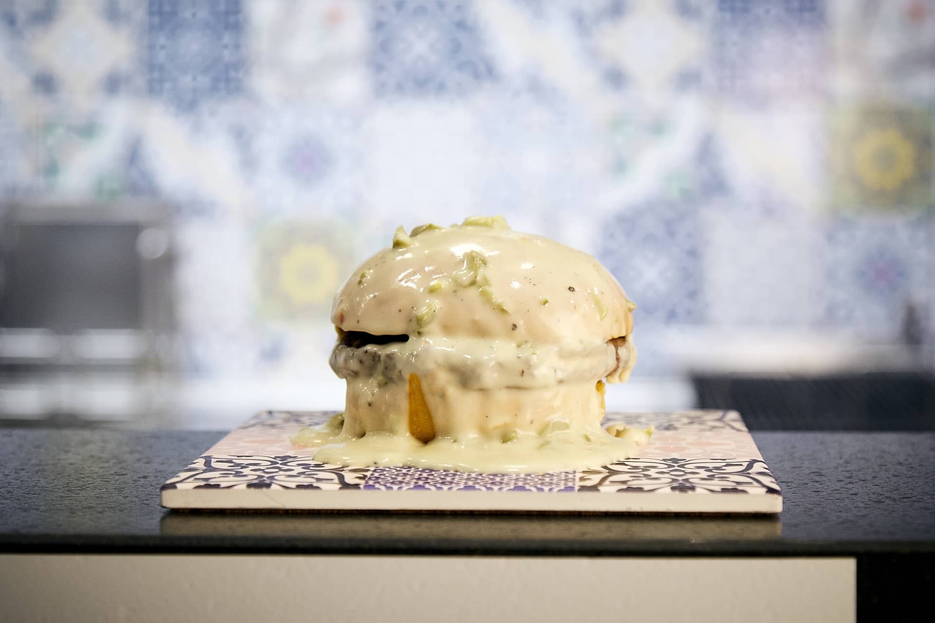 Con i nostri buns abbiamo trasformato il panino in un’esperienza: tonno con caponata, polpo e menta, maiale nero con mele caramellate, gambero rosa con mandorle. Tutto accompagnato da chips di ortaggi.
